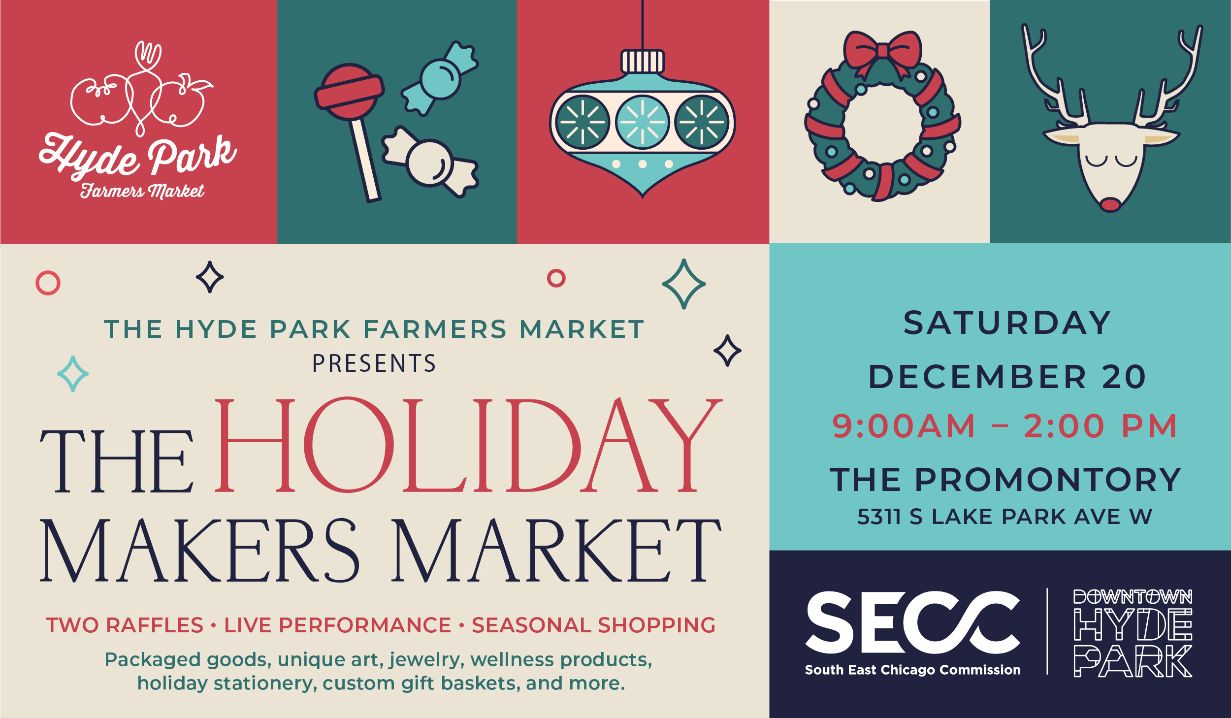 On Saturday, December 20, 2025, Chicago’s Hyde Park Farmers Market (HPFM) will host a day of shopping at The Promontory (5311 S Lake Park Ave W), offering a festive indoor experience from 9 a.m. to 2 p.m.